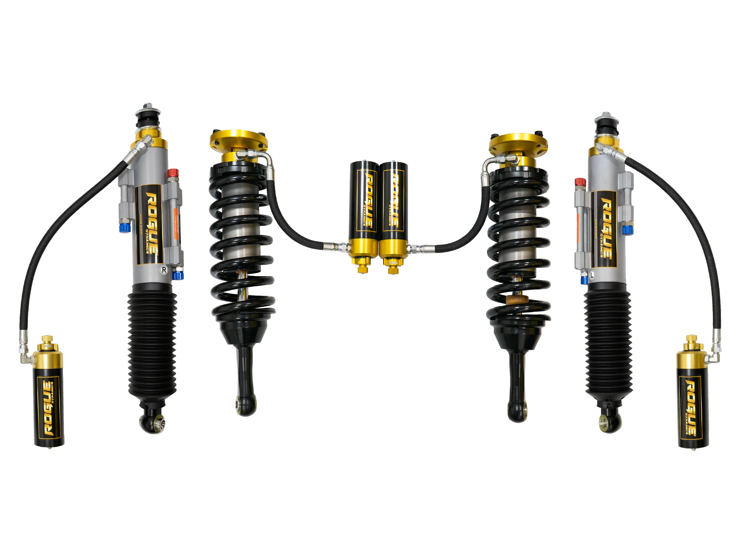 ROGUE DYNAMICS 4RUNNER 2.5 FRONT COILOVER SHOCKS WITH REMOTE RESERVOIR – HI/LO COMPRESSION AND REBOUND ADJUSTER